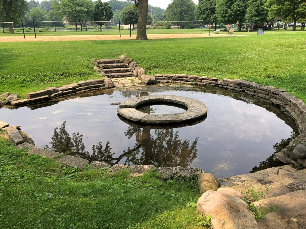 This must be her. The sundial – whose gnomon is missing, so it can’t function for telling time – has been there since 1987, so I assume the park has been there at least that long, if not longer.