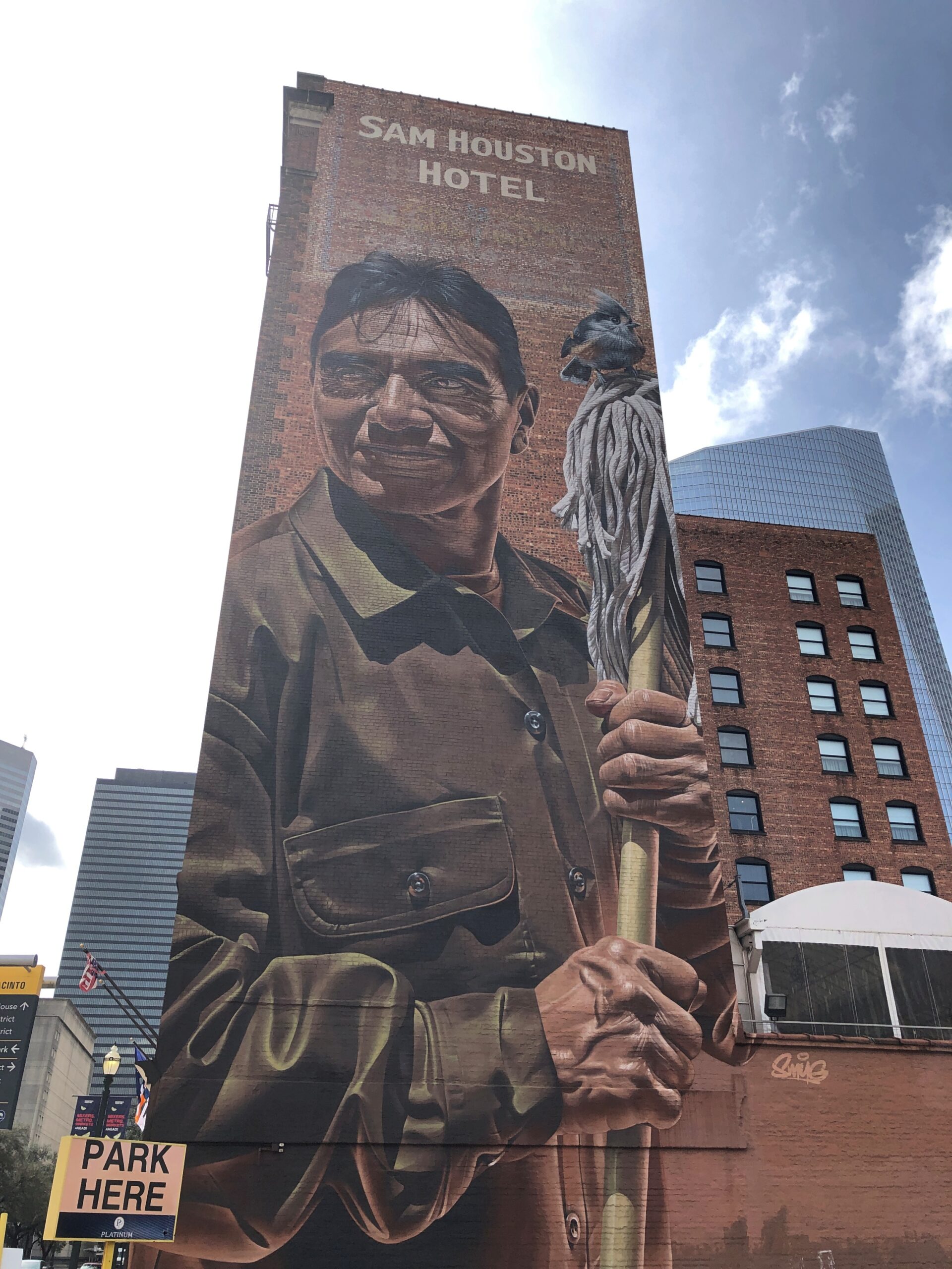Heat wasn’t an issue in Houston in February, which was one reason to make my way downtown for a walkabout. Another reason is completely idiosyncratic: I couldn’t remember the last time I’d been downtown. Not 2019, though we could see downtown from Buffalo Bayou and visited Houston’s alt downtown, the Galleria district; or 2015, when we made it to the Menil Collection. Close each time, but no cigar.