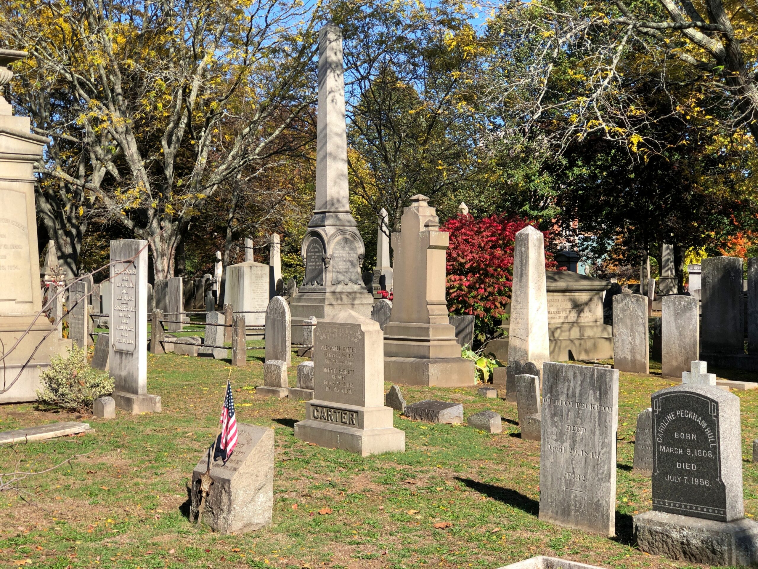 Other residents include one Abraham Sawyer (d. 1939), a dwarf who reportedly refused to be a part of carnivals, instead working for manufacturers to advertise their products. He requested to be buried in a full-sized grave, but since I didn’t read of him until later (today), I didn’t go looking for him.