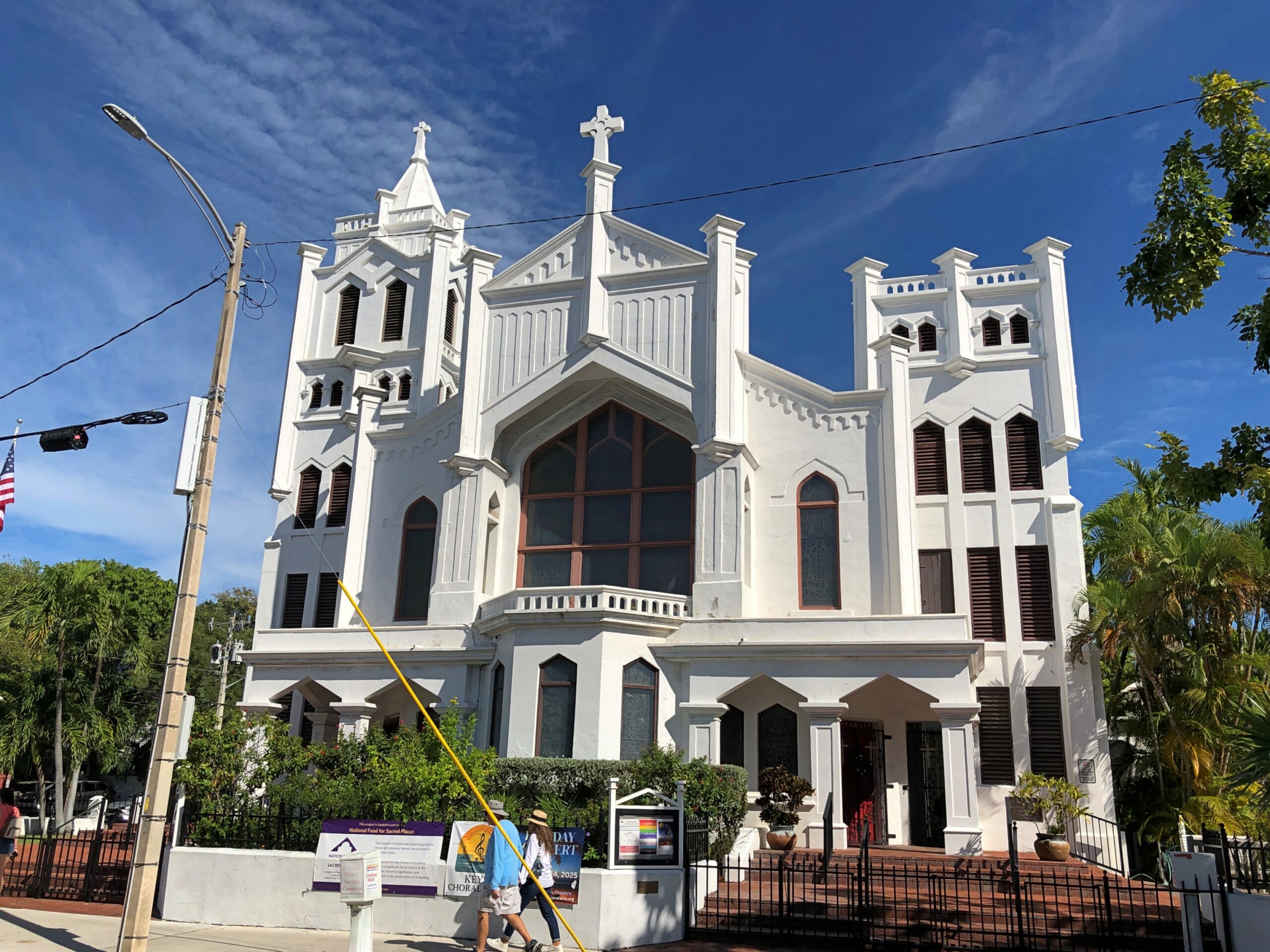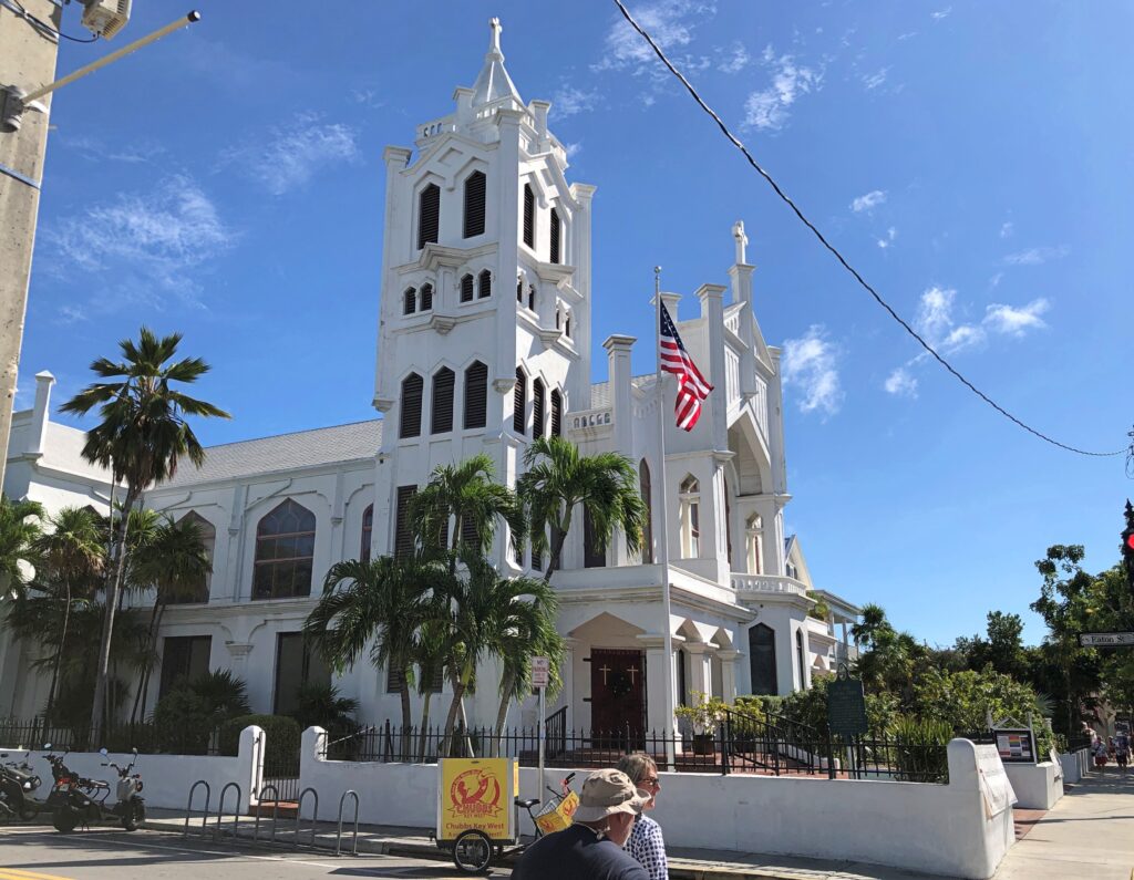 In 2014, I ducked away from crowded Duval into the church, which seemed to be open because the organist was practicing. I sat, impressed by his vigorous noodling, and by the fact that no one else was in the church.