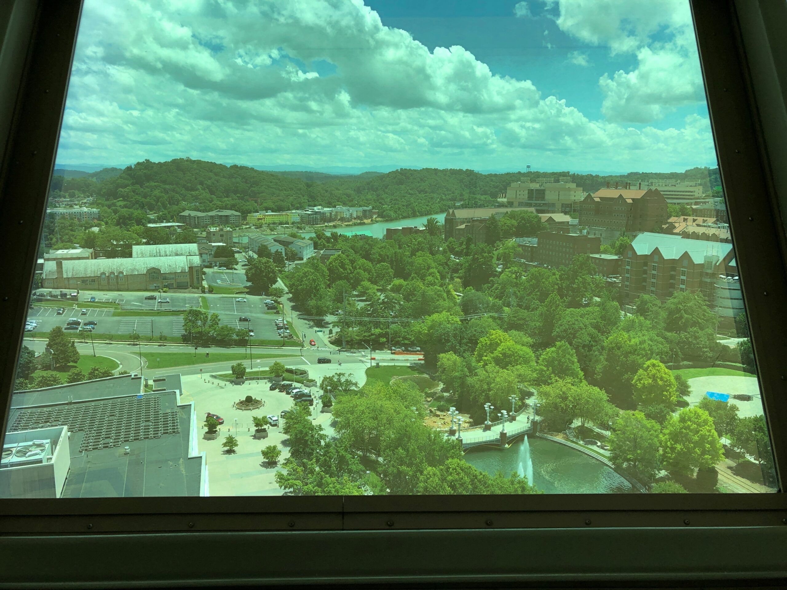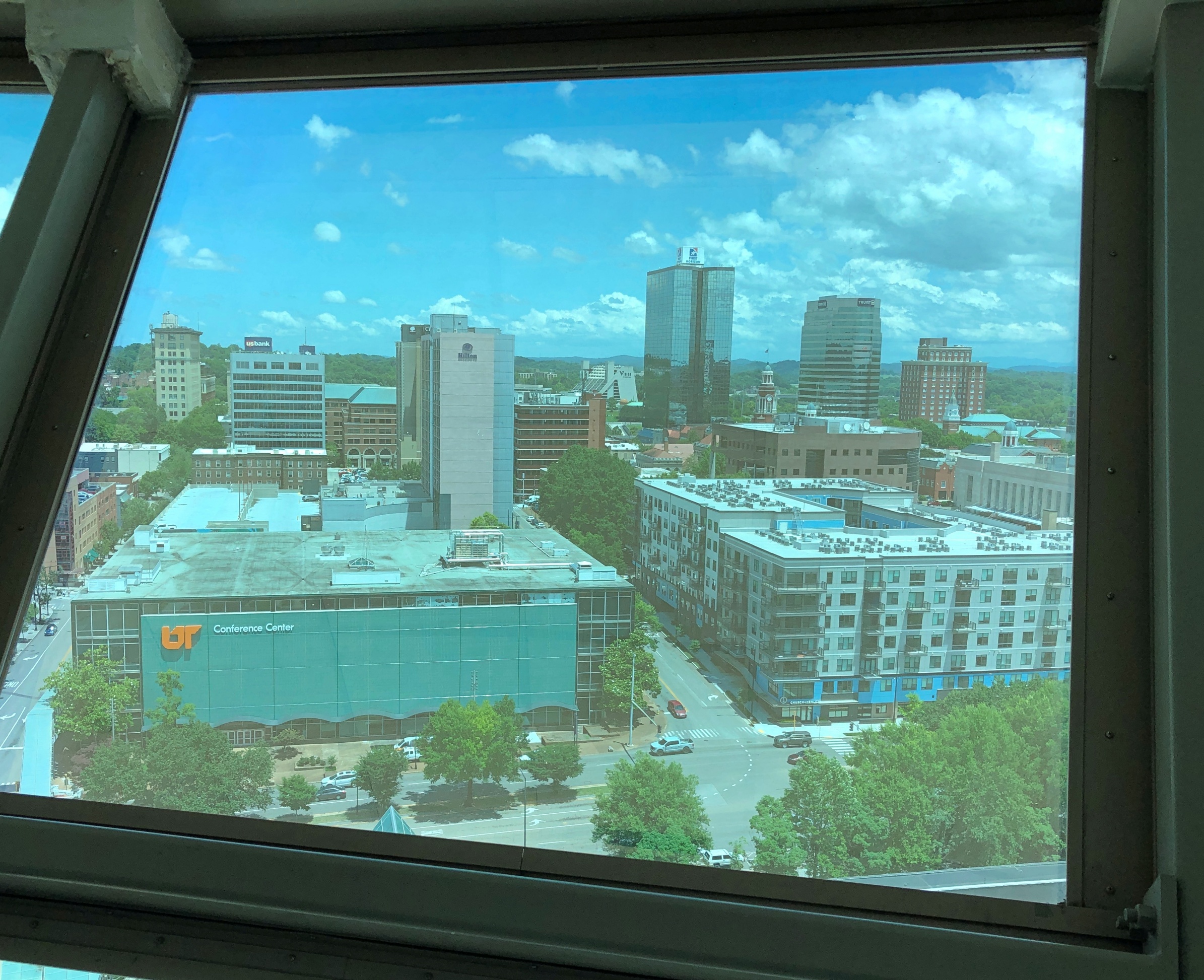 There might have been closer places to park near the structure, but I’m a rank novice when it comes to knowing my way around downtown Knoxville. Luckily, the streets weren’t densely packed with traffic, even on a mid-day weekday, so I made my way easily to surface parking about a quarter mile from the tower. Free parking, the best kind.