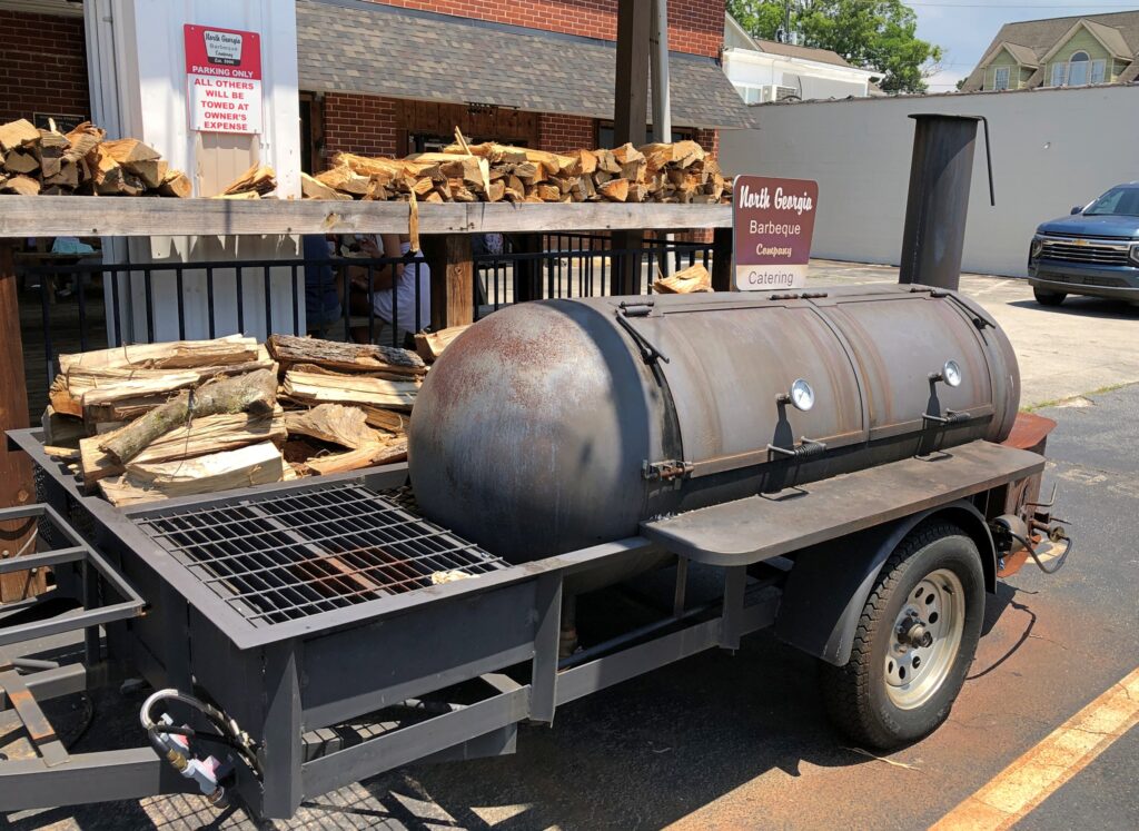 I found barbecue in Georgia. Specifically, Dahlonega. North Georgia Barbecue Co. is a stone’s throw from the Gold Museum and its best advertisement is out front of the restaurant. Good eats inside.
