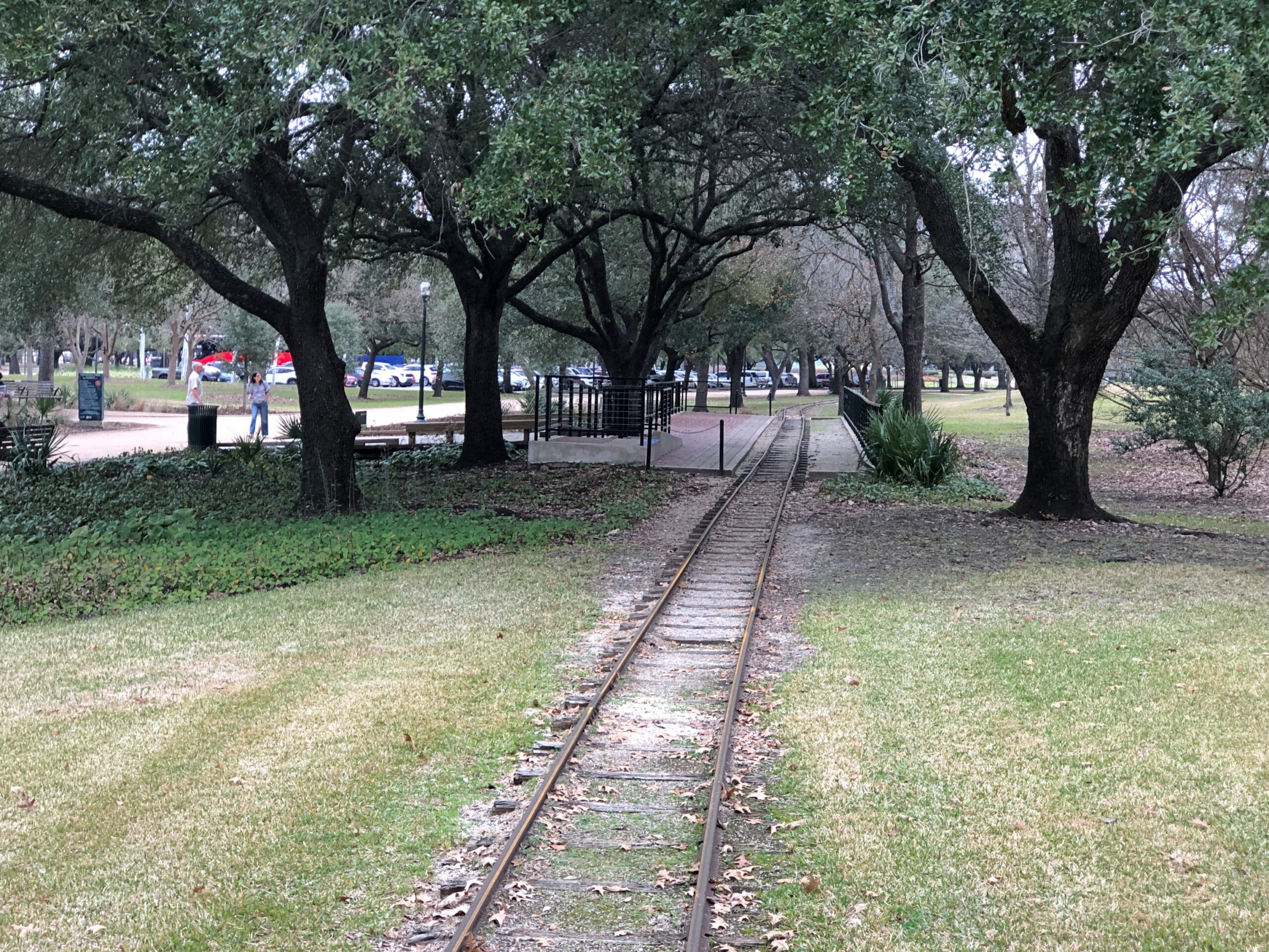 Just outside the Japanese Garden are tracks for the Hermann Park Railroad, a narrow-gauge line that makes a loop through the park. I didn’t ride it, but of course thought of the Brackenridge Park RR in San Antonio, the one by which all others are judged (by me).