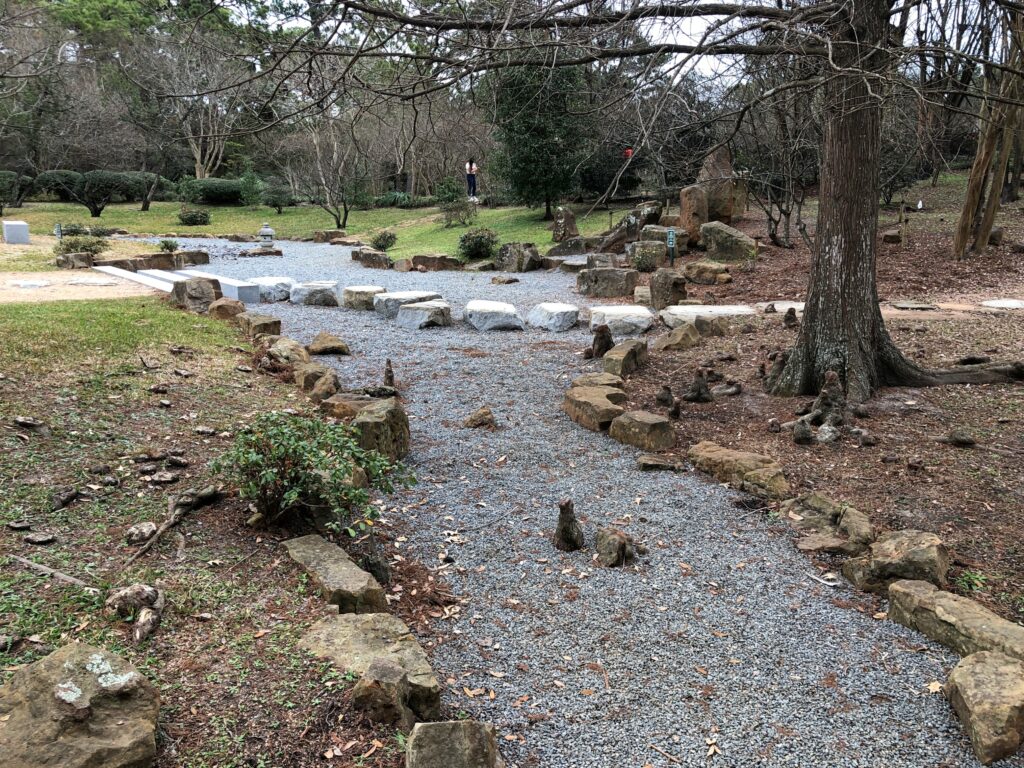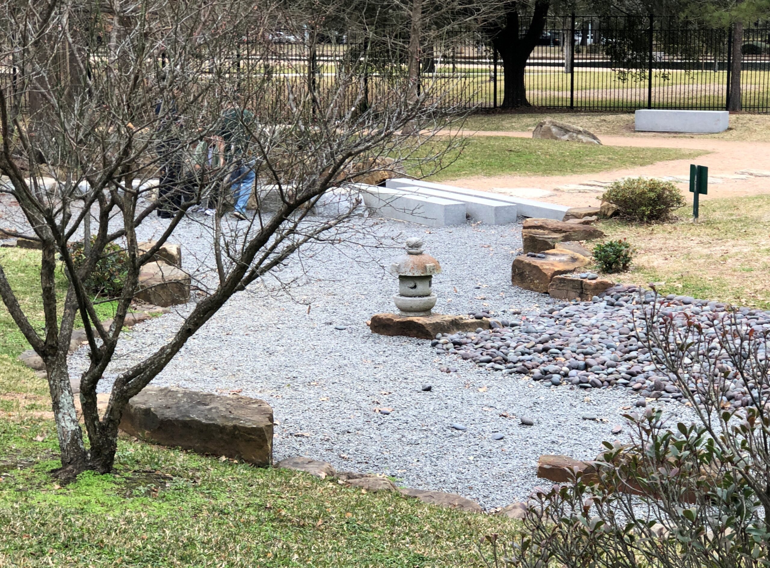 A mix of imported Japanese flora and the pines of East Texas. Hermann Park itself dates from the early 20th century. The Japanese Garden, the late 20th century, a prosperous time for Japan, and when that dustup between Nippon and the USA had mostly been put in the rear view mirror.