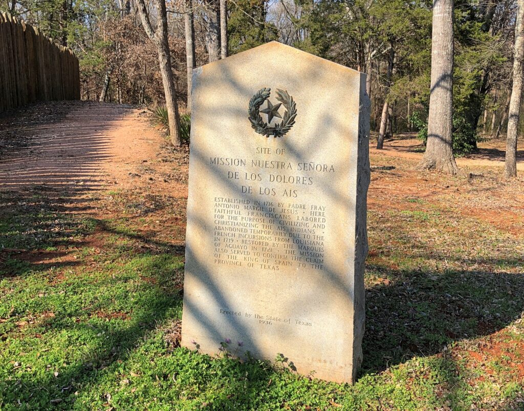 Not far away from the courthouse, half a mile or so south on US 96, is Mission Delores State Historic Site. Once upon a time, but not for that long, Mission Nuestra Señora De Los Dolores De Los Ais was there.