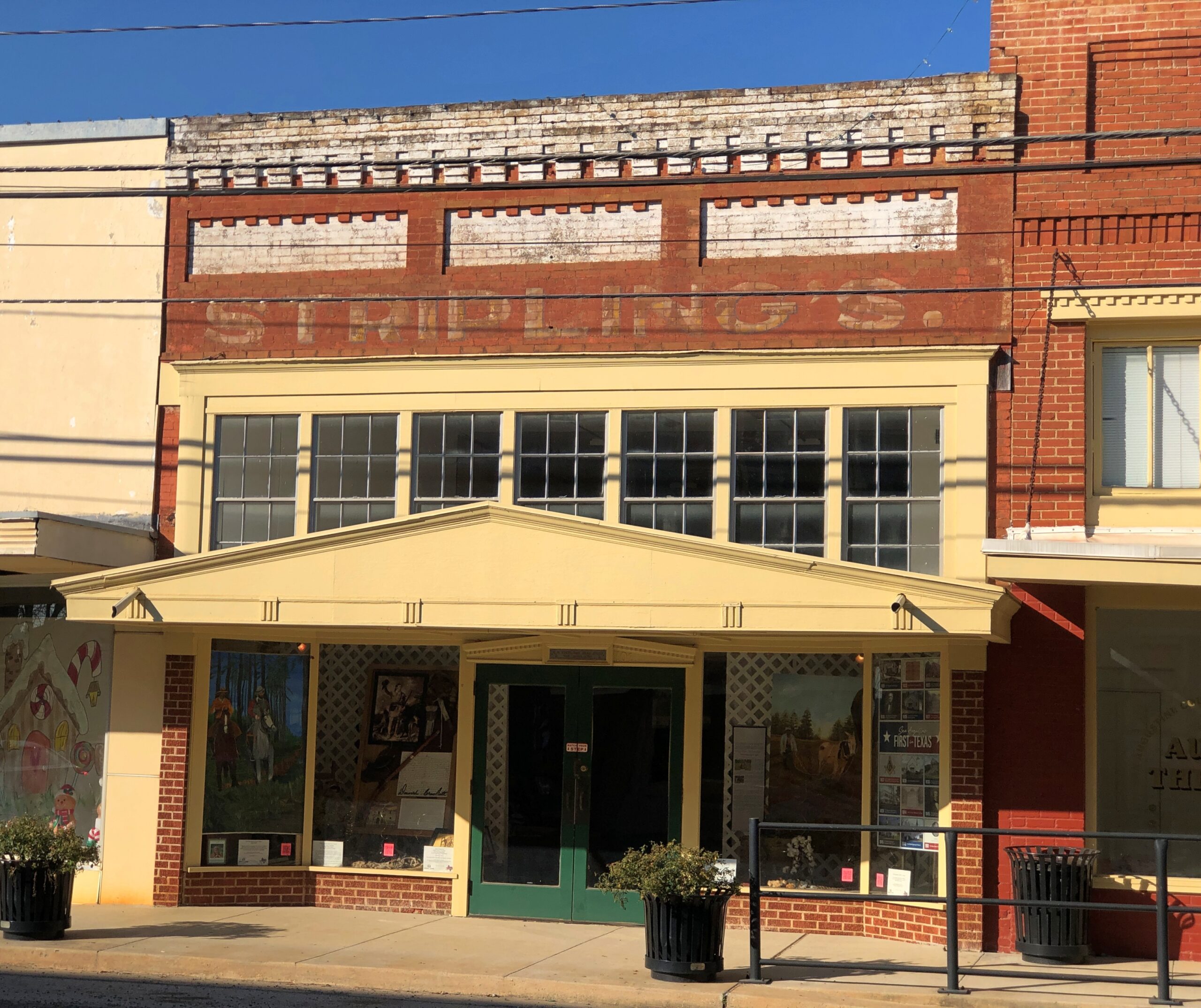 “The original town well was dug by slaves on this site in 1860, and a saloon was built over it in 1891,”says the Society of Architectural Historians. “The First National Bank acquired the property, filled in the well, and commissioned this building. Raif Stripling purchased the building several years later and reopened the well as a tourist attraction. In 2003, the San Augustine Historical Foundation bought the property, which is now operated as a gift shop. The entrance canopy’s curious pediment with miniature triglyphs was added to his father’s building by Raiford Stripling.”